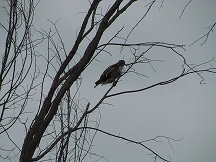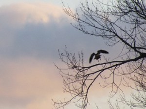 Mom was on the roof of the barn-shed next door, holding a worm, chirping with determination, probably yapping at me to get out of the way so she could feed junior.
